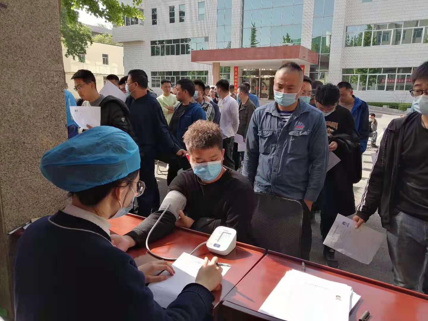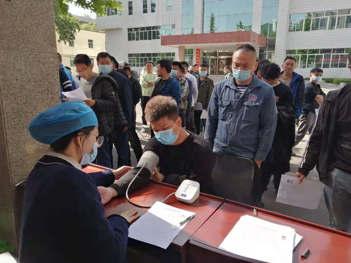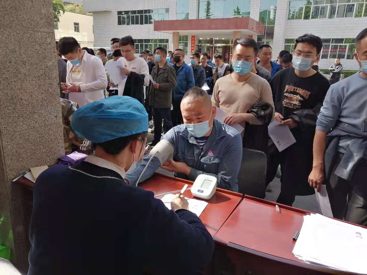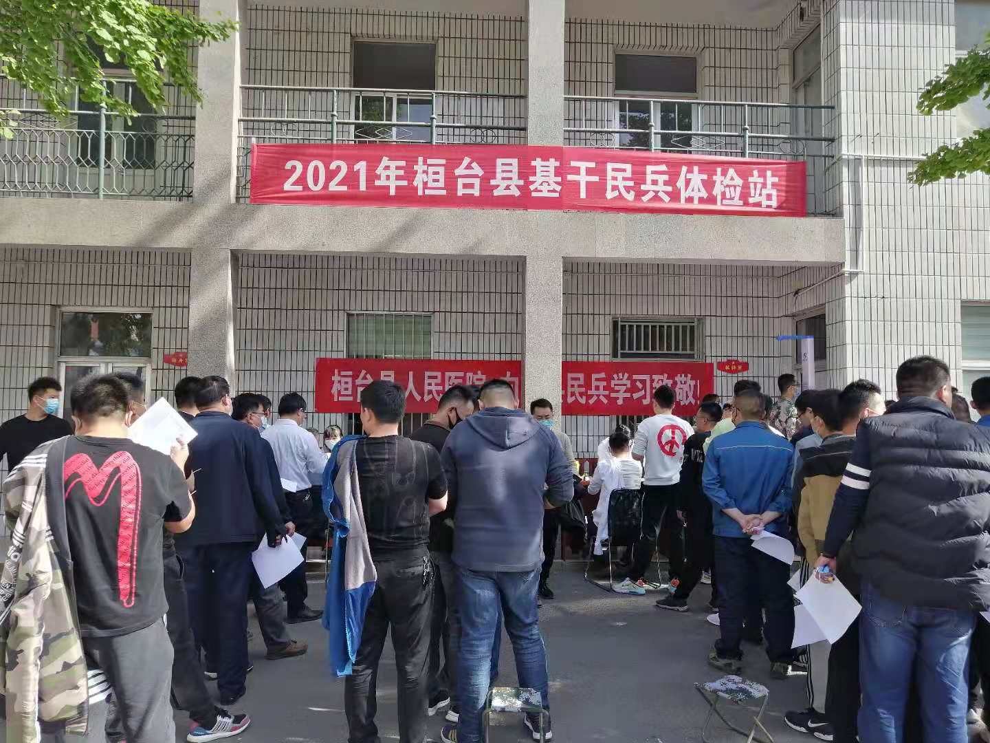 图为2021年4月28日,我司员工参加2021年桓台县基干民兵体检现场。