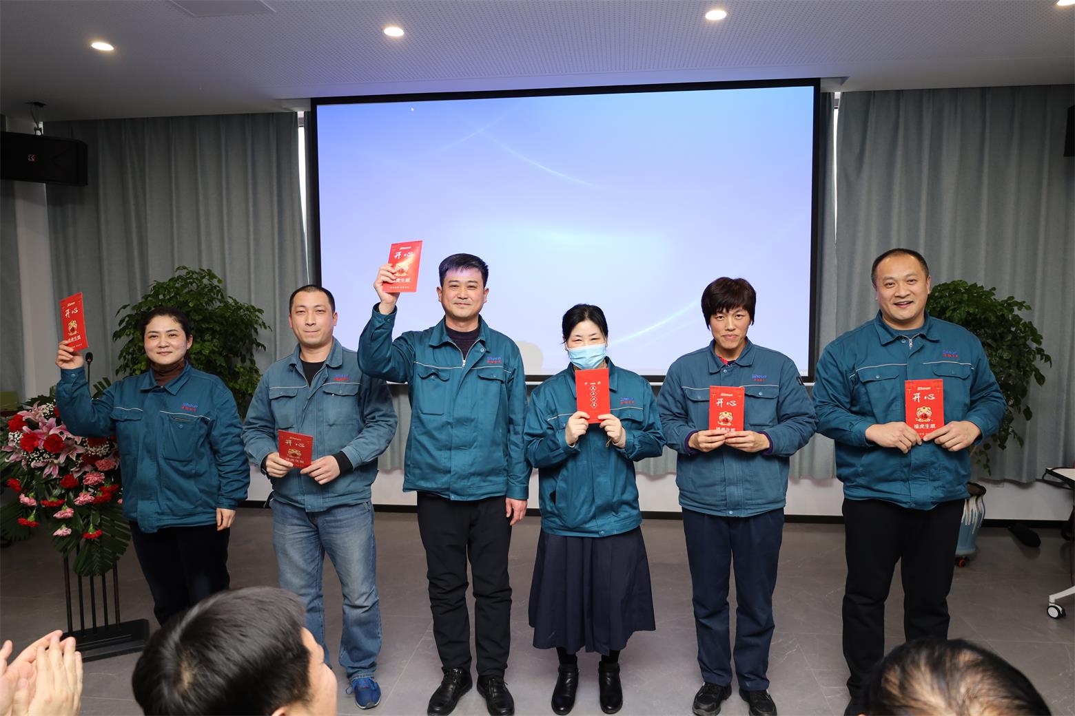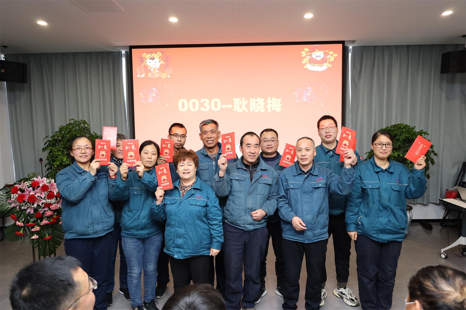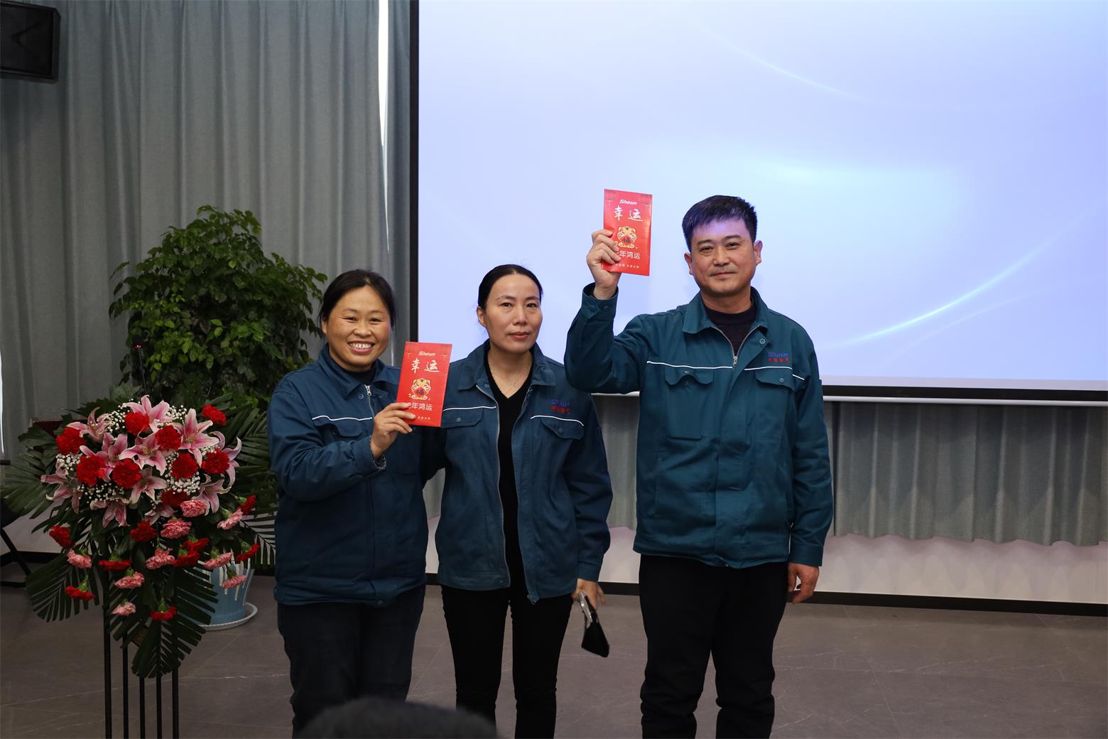 大会最后,公司精心设计了“幸运抽红包”环节,由3名退休员工亲自为全体员工抽取幸运红包。员工们手中拿着红包,脸上洋溢着开心的笑容。