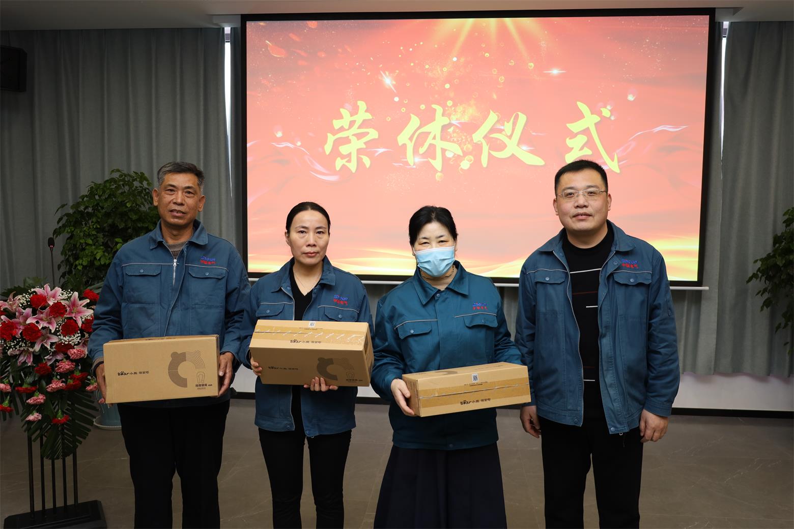 会上,公司为3名服务多年的老员工举办了荣休仪式,总经理一番情真意切、感人肺腑的讲话,道出了对3名退休员工的感谢与不舍。营销中心副总为他们颁发了纪念品,全体金年会下载人共同见证了他们的光荣时刻。