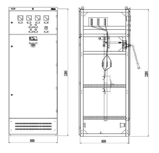 GGD型交流低压配电柜的柜体采用通用柜形式,柜架用8MF冷弯型钢局部焊接组装而成,并有20模的安装孔,通用系数高;用高阻燃PPO材料热塑成型的ZMJ型母线夹为积木式结合结构、机械强度和绝缘度高;柜体的顶盖,可在需要时拆除,便于主母线的装配和调整。柜顶的四角装有吊环,用于起吊和装运。整柜的防护等级为IP30 ,用户也可以根据现场环境要求在IP20-1P40之间选择。