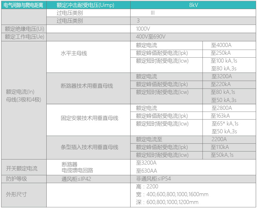 3极和4极水平母线系统其额定电流可至7400A