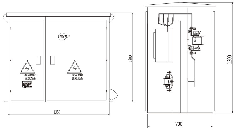 配电柜的柜体采用2.0mm 304不锈钢板,外形有类似房屋带有檐口的顶盖,使雨水不能停留箱顶,左右两侧有通风窗,窗内装有丝网,既能散热又能防止小动物进入箱体,箱体防护等级不低于IP44。