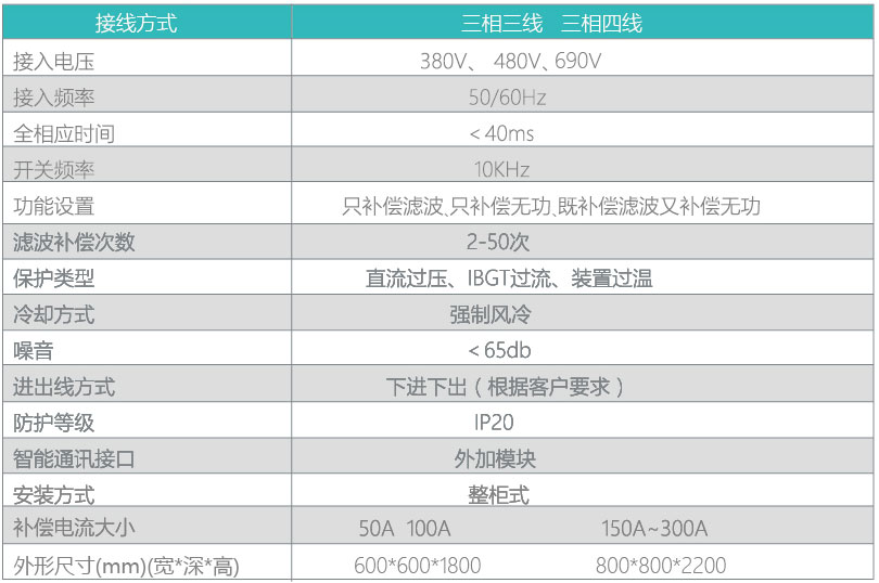 实现完美电能质量系统: APF可同时滤除2~50次谐波,三相有功不平衡补偿、三相无功不平衡补偿、分相补偿。